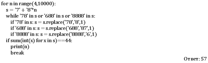 На вход приведённой выше программе поступает строка, начинающаяся с цифры «7», а затем содержащая n цифр «8» (3 < n < 10 000).